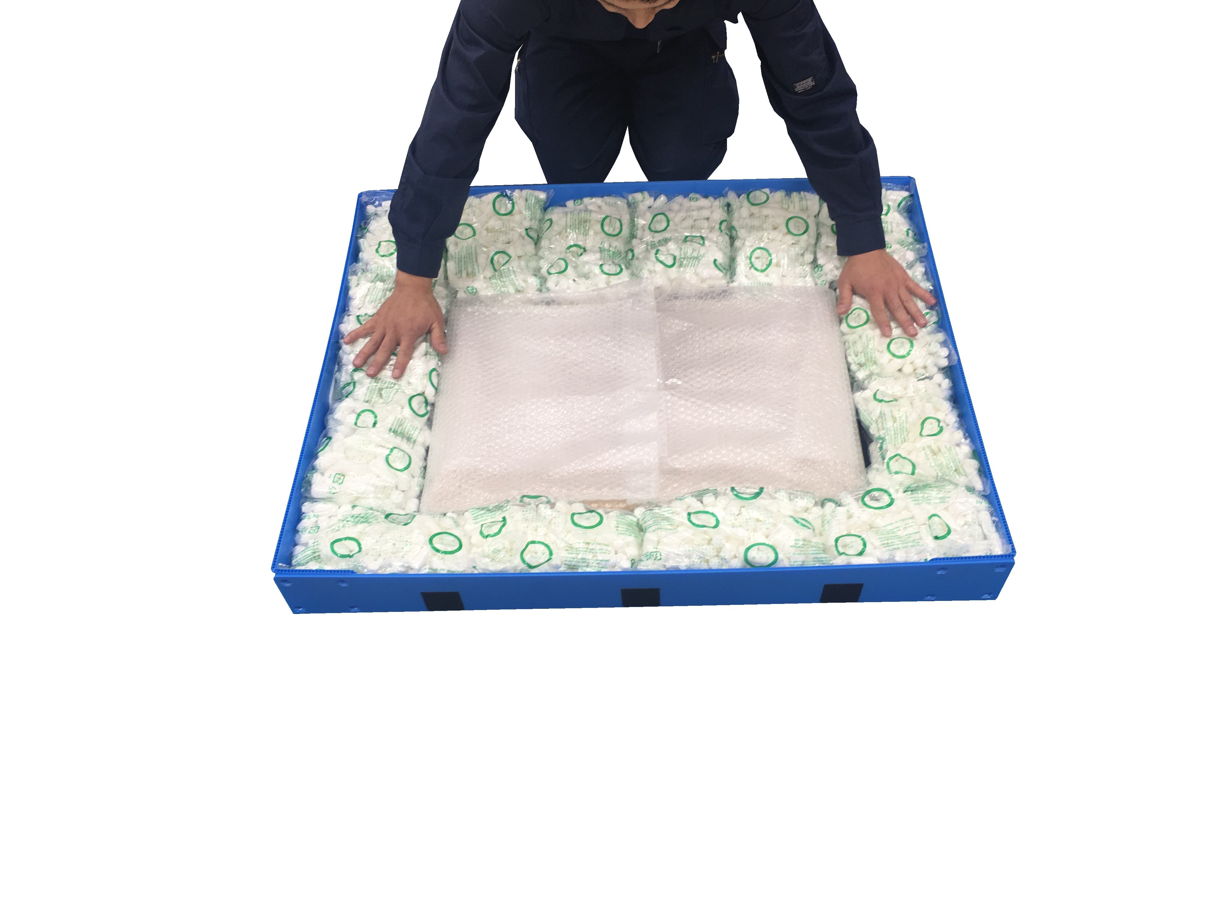 (少しでも軽い梱包箱にするため、プラダンを採用しました。)